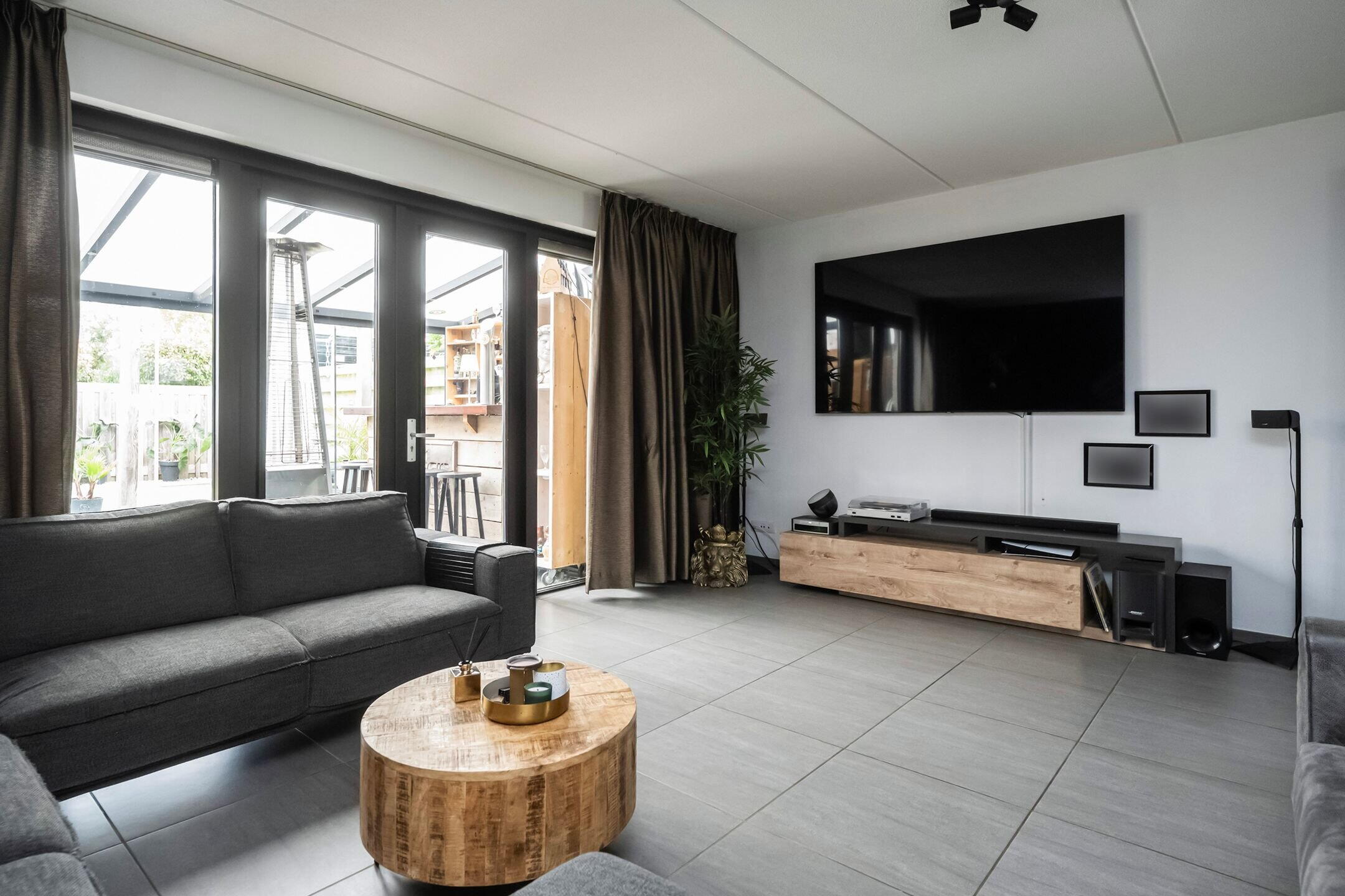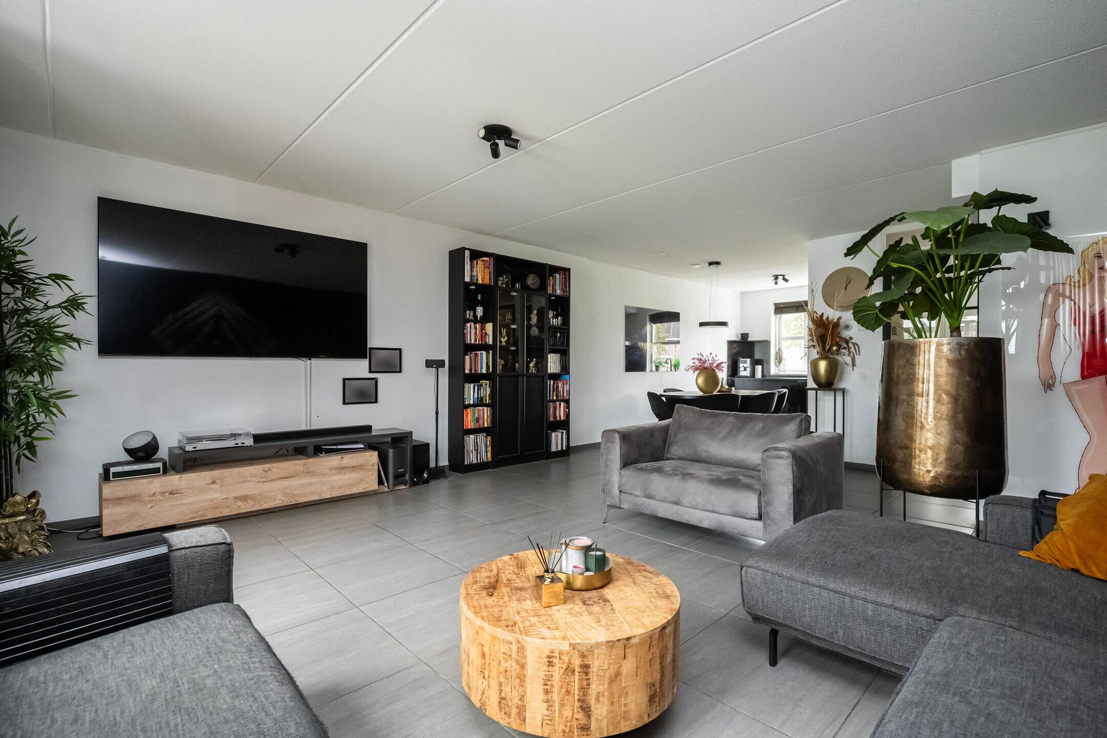 De uitgebouwde woonkamer met tegelvloer en vloerverwarming biedt een warme en comfortabele leefruimte. De luxe en riante open keuken is in 2025 gerenoveerd met nieuwe frontjes, een granieten werkblad en grotendeels vernieuwde inbouwapparatuur. Aan de achterzijde zorgt de serre voor extra licht en een fijne verbinding met de tuin.