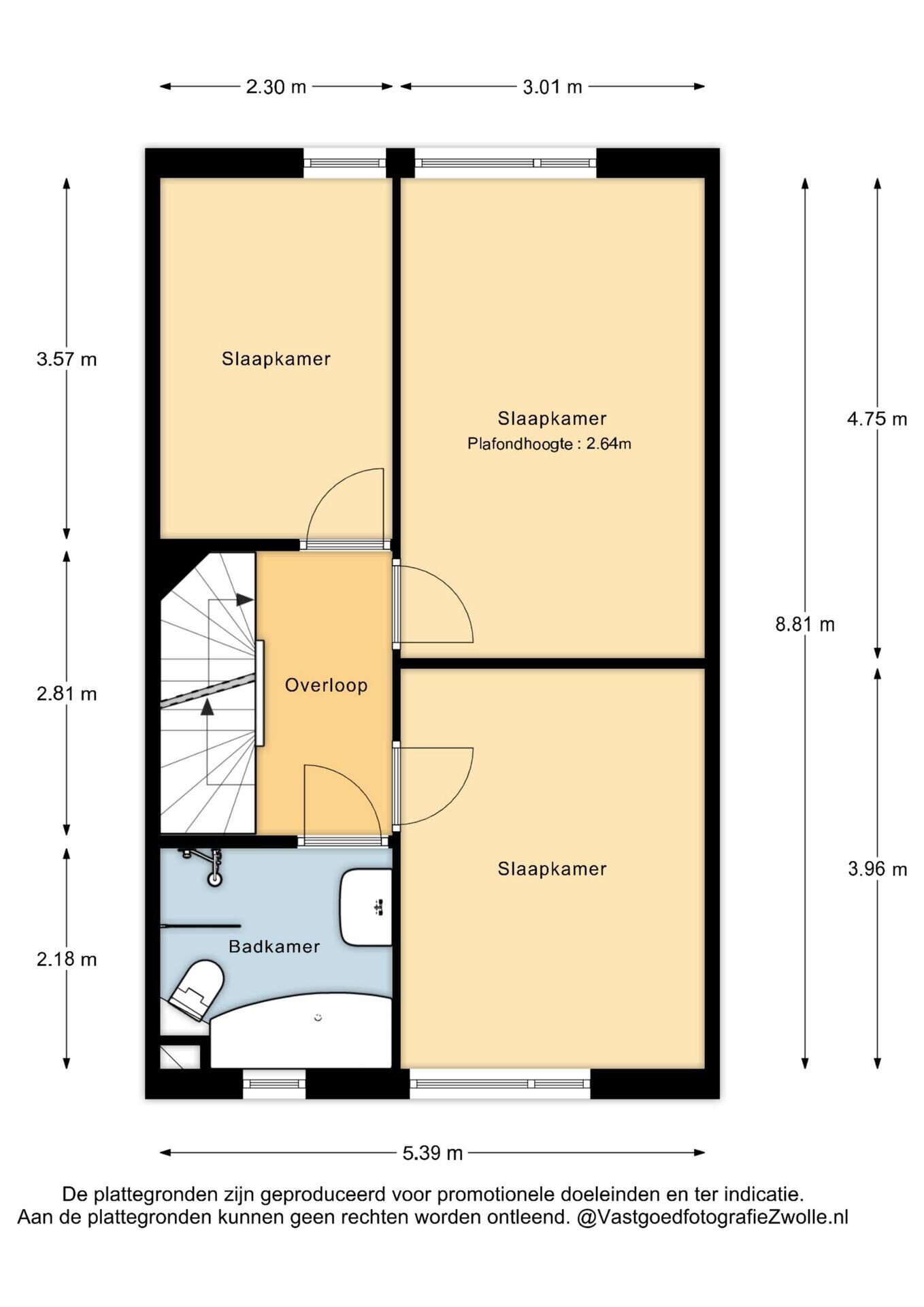 - 51 m² (8,60 meter diep en 5,90 meter breed)